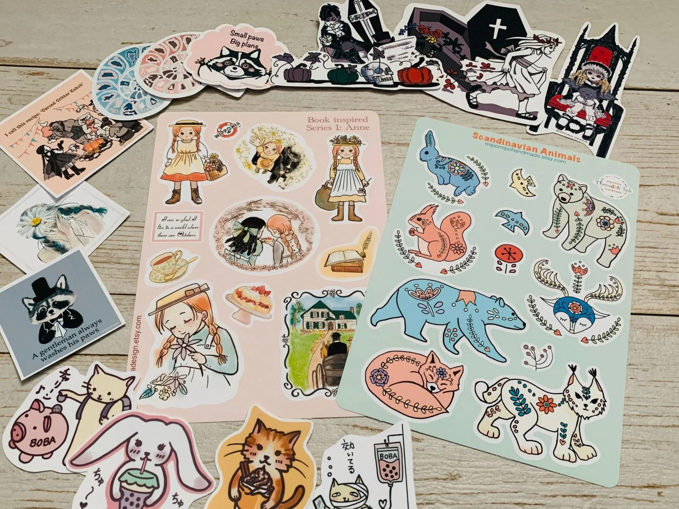 Whimsical creatures, folk-inspired animals, and spooky-cute designs to decorate journals, laptops, and more.