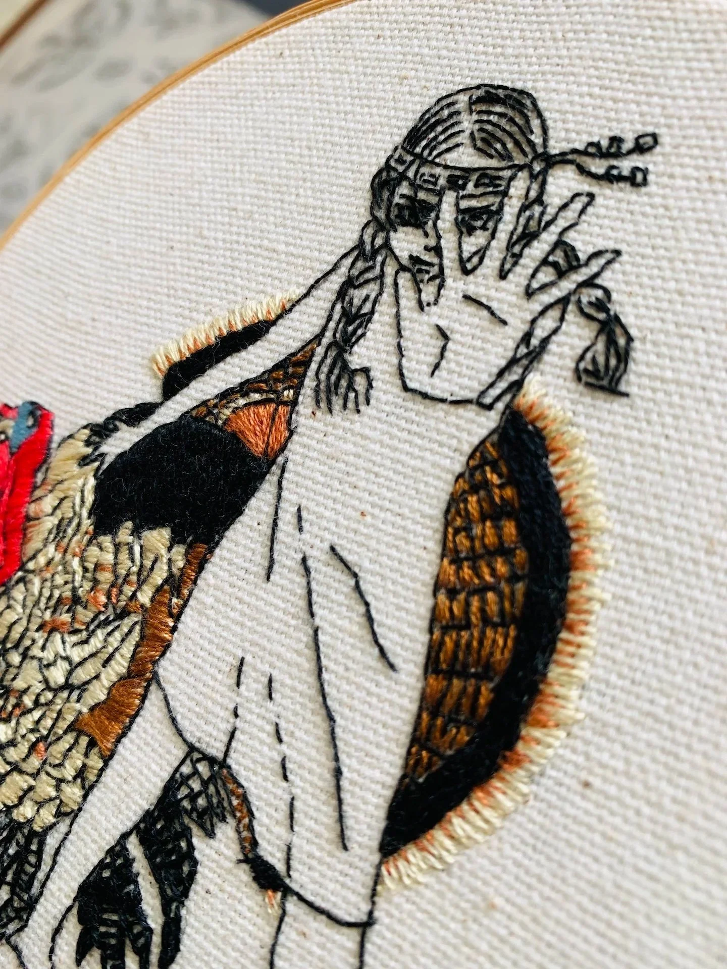 Back stitch is my most-used stitch in my designs. It is a versatile stitch that creates a neat, continuous line. Easy to learn and quick to sew, it’s a go-to for beginners and pros. Bring the needle up ahead of the last stitch, then insert it at the end of the previous stitch to form an unbroken seam. It’s ideal for outlines, lettering, and fine details—lying flat, resisting snags, and durable. Use one or more strands for thickness. For small curves, use tiny back stitches, while longer back stitches can be used where the line is straighter.
